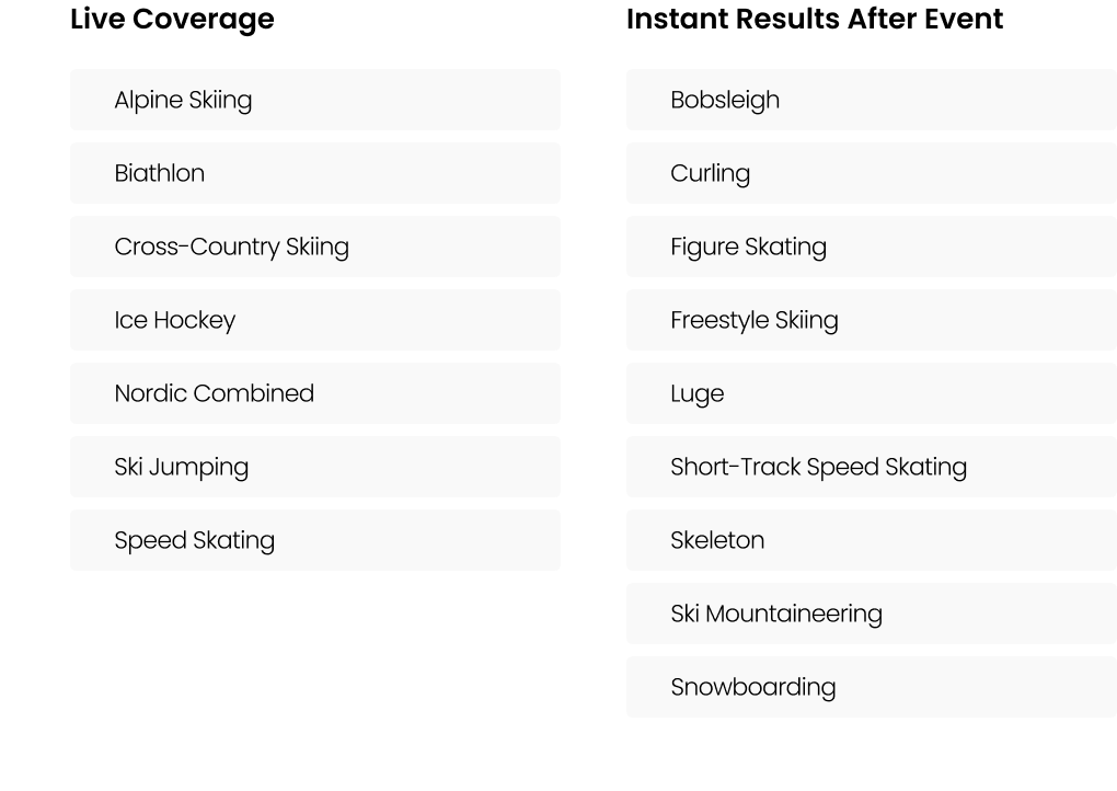 Enetpulse powers every moment of the Milano Cortina 2026 Winter Olympics with fast, reliable coverage across all 600+ scheduled events in 16 sports. With the event taking place from 2nd-16th February 2026, we cover everything from alpine skiing to ice hockey, and your audience gets instant access to results, medal tables, and schedules delivered through flexible widgets, API and XML feeds, or a white-label minisite.